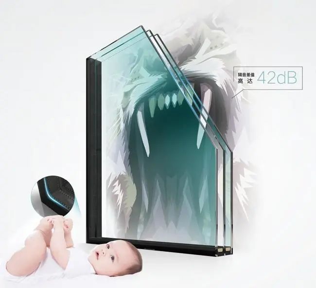 智赫隔音门窗采用LOW-E多层中空钢化玻璃组合,板层之间的特殊惰性气体及中空暖边技术,实现了让空气阻隔噪音的效果,大大增加了窗的隔音性能,让室内空间更加宁静。