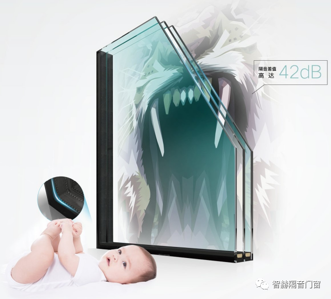 优质的隔音门窗采用两层或三层的中空钢化玻璃,搭配多重复合型发泡胶条,内充惰性气体,双道密封胶,层层密封,有效降噪35-42dB。
